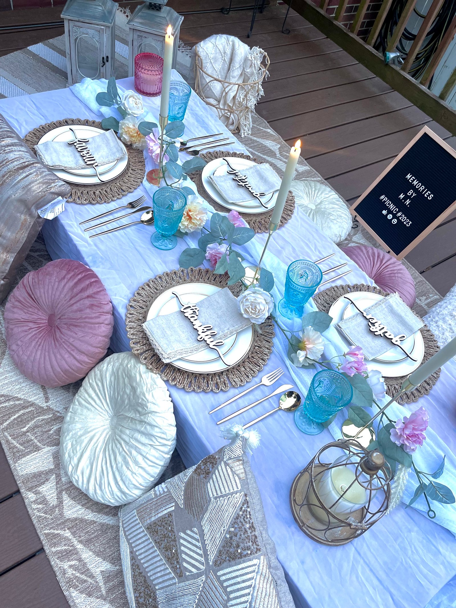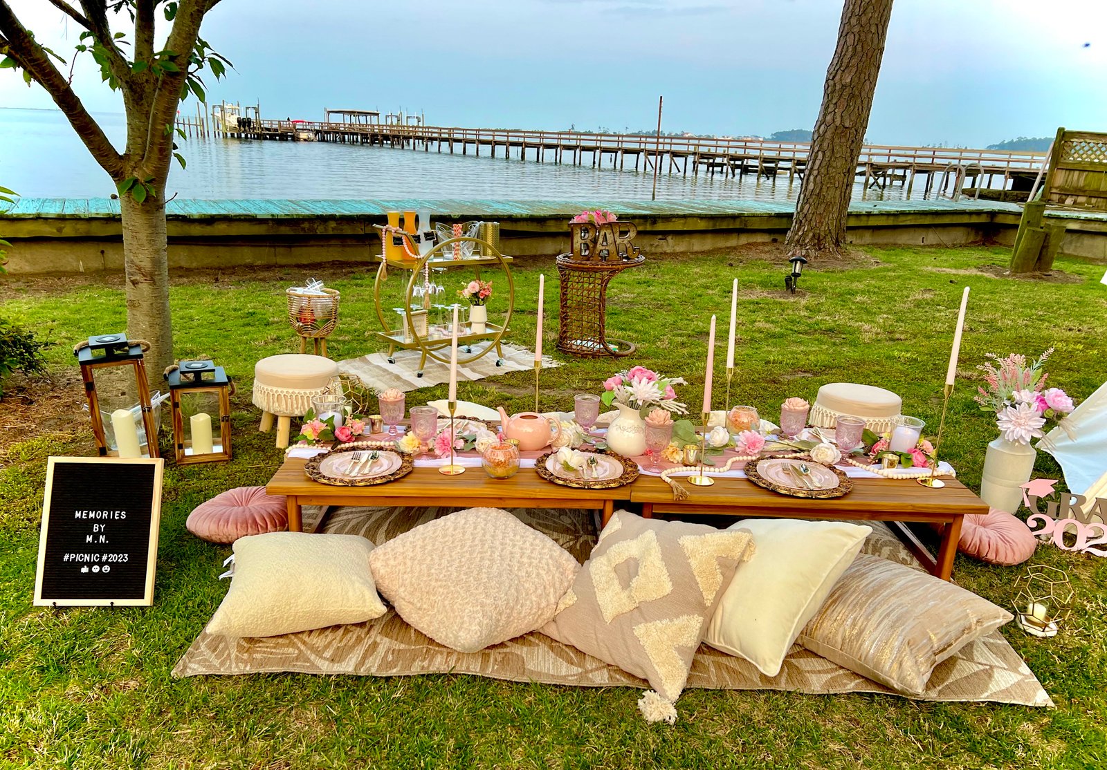 Complete styled picnic setups for indoor or outdoor venues.
